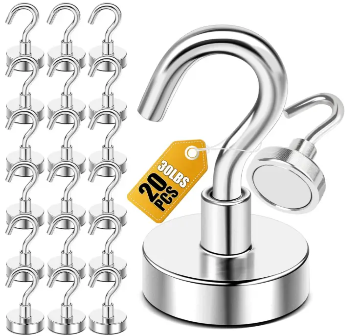 DIYMAG Magnetic Hooks, 30lbs+ Magnet Hook 2025 Cruise Cabin Ship Essentials Heavy Duty Strong Magnets Refrigerator Fridge Hanging for Classroom Beach Vacation Kitchen Grills Home 20 Pack