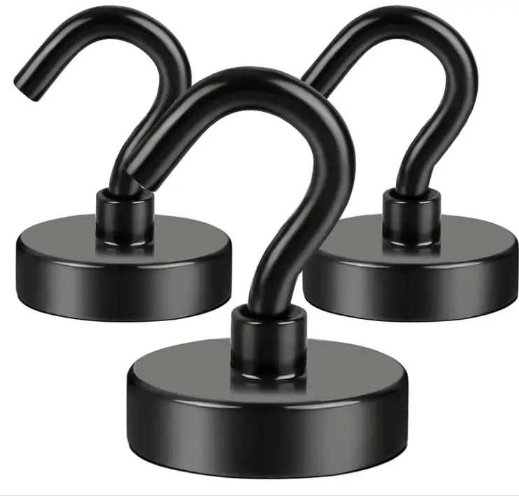DIYMAG Hooks for Hanging String Lights, Black Magnetic Hooks 30lbs+ Magnet Hook 2025 Cruise Cabin Ship Essentials Heavy Duty Strong Magnets Refrigerator Fridge Classroom Kitchen Grills Home 3PCS