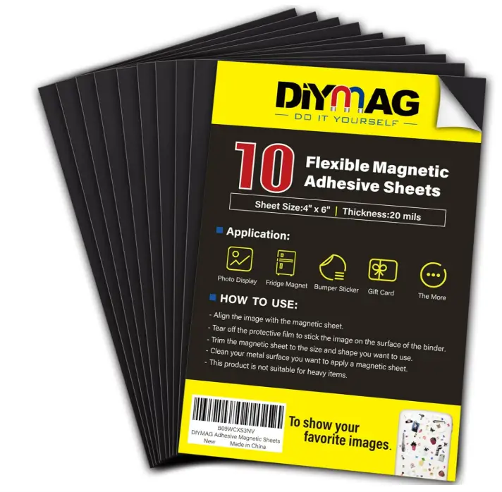 DIYMAG Magnetic Adhesive Sheets, 4″ x 6″ 10 Pack Cuttable Magnets Flexible Magnet Sheets with Adhesive for Crafts Photos Classroom Decorations Easy Peel and Stickers for Planning and Organization